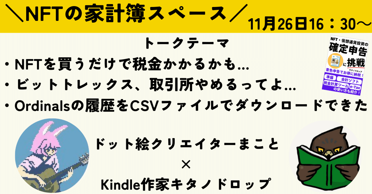 キタドロ確定申告のためにNFTの家計簿を作らないと…